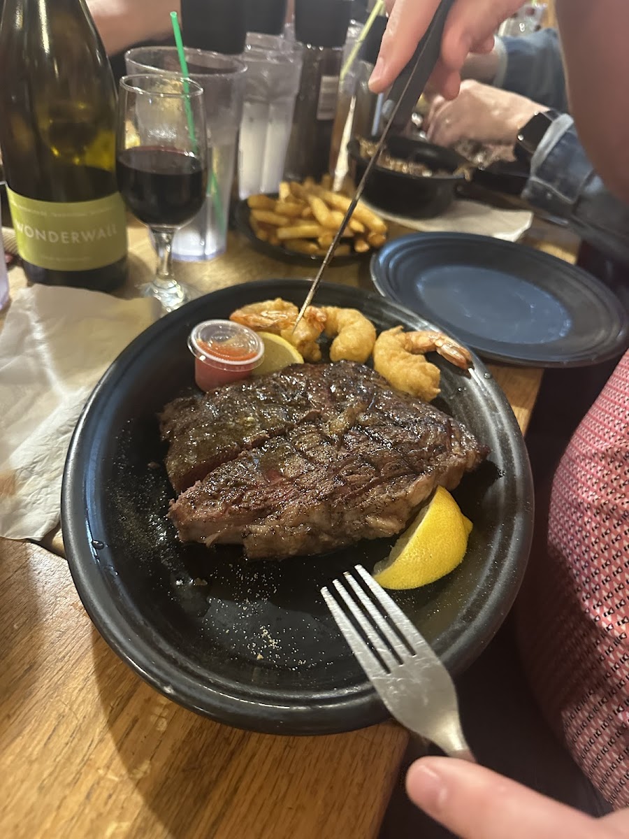 I've been hearing about this place for quite some time. We finally made it down there and we really enjoyed it. Don't let the look of the outside scare you away. It's a small hidden gem. Service was very nice and the pricing matches the food. Only thing that surprised me was that the shrimp was breaded and not grilled. Nothing wrong with it, just expected grilled shrimp with steaks like this. All around a good experience and I'll be back this summer on the bike.