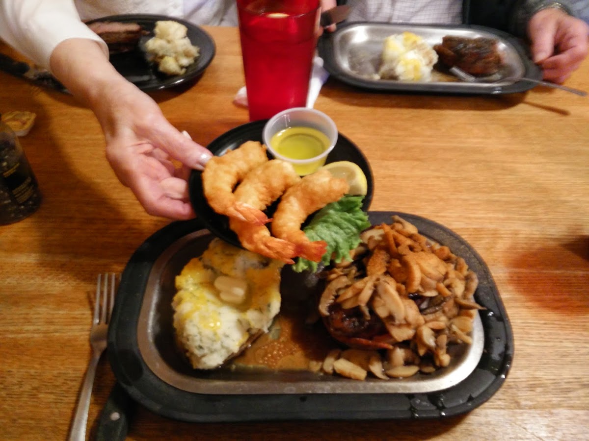 The shrimp are amazing! Steak tasted great but was a little fatty. Food portions are definitely worth the cost. Every thing tasted delicious. There is usually a wait time from my understanding, but we decided to eat outside and we got a table right away. Will be back again!